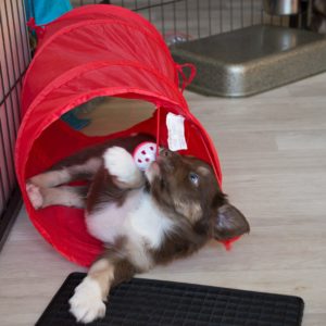 Ob primerni starosti čas preživljajo tudi zunaj, kjer vsakodnevno spoznavajo novosti in se srečujejo z novimi izzivi. Mladičke navadimo na različne materiale (kovino, les, glino, travo, ploščice…), v okolju kjer bivajo imajo na voljo tudi različne predmete kot so tunelčki, majhne ovire iz različnih materialov, veliko igrač… Ko so dovolj stari, jih navadimo tudi na vožnjo v avtu in se z njimi odpravimo na izlete. Poskrbimo tudi za to, da so navajeni na druge pse, in da spoznajo pester nabor ljudi od starejših oseb do otrok.
